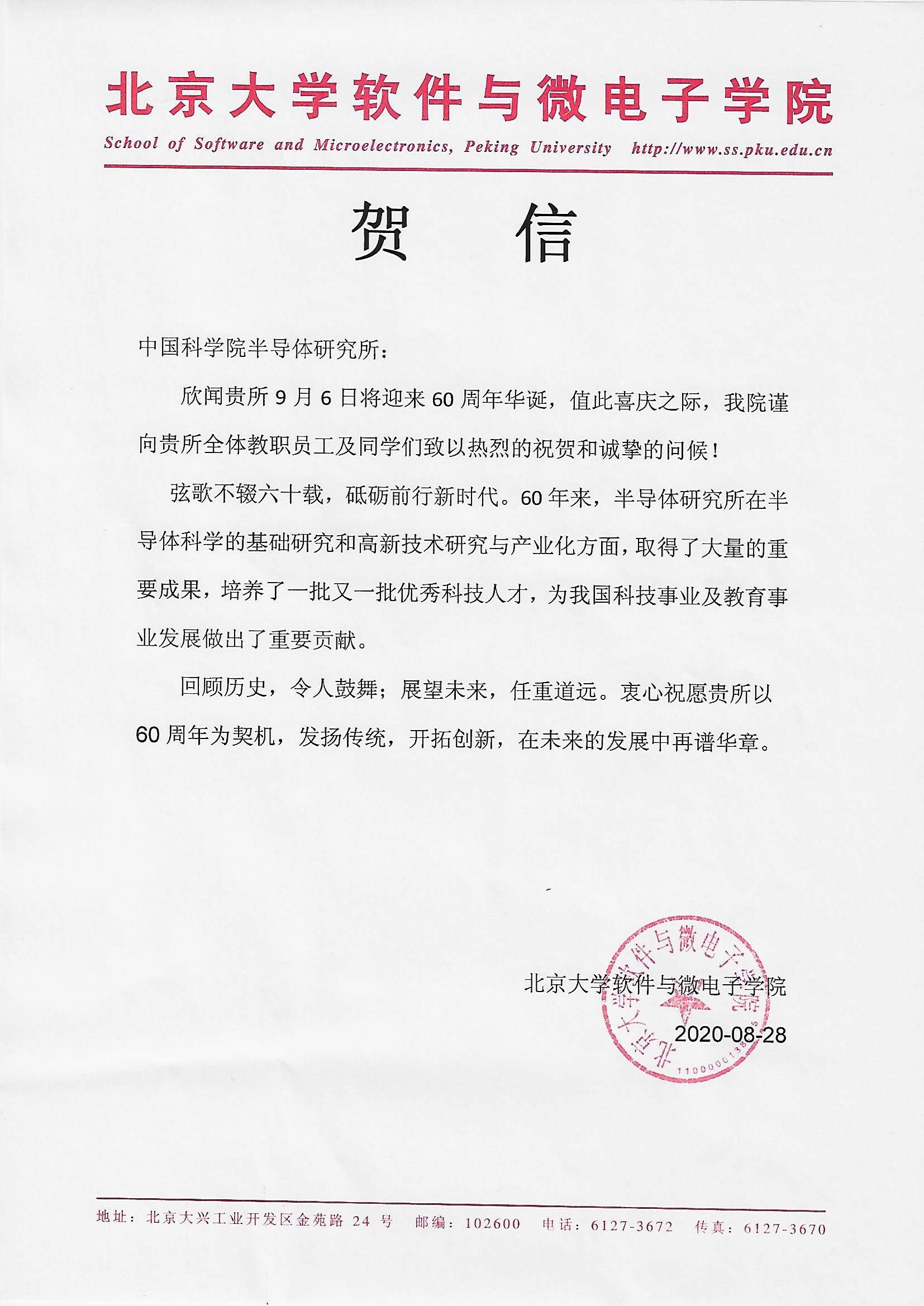 北京大学软件学院与微电子学院贺信