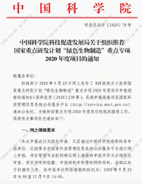 附件是院关于组织推荐国家重点研发计划“绿色生物制造”重点专项2020年度项目的通知,请各有意向申报的人员在10月16日之前填报附件申报意向调查表,以便统筹组织,过时不候。