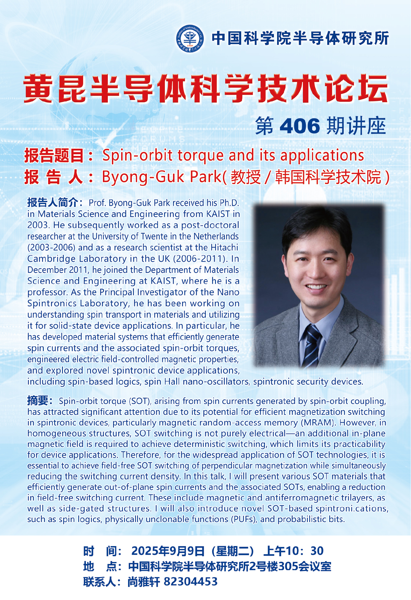 Byong-Guk Park教授将于2025年9月9日来所交流并在黄昆半导体科学技术论坛上作第406期报告