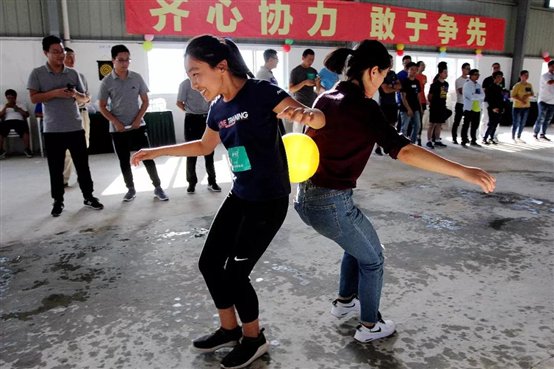 背对背拥抱:和队友齐心协力,在规定时间内将最多的气球运到终点,寻找最默契的三人组!