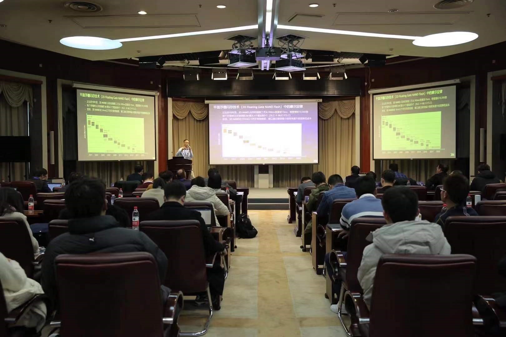 本次论坛邀请到中国科学院微电子研究所、清华大学和北京大学的多位专家、学者作主题报告。北京大学吴燕庆以《高性能超薄二维半导体器件》为题,介绍了基于超薄二维半导体的超短沟道器件、射频器件和异质结器件。中国科学院微电子研究所黄成军围绕《微纳电子技术与生命科学的联姻》,介绍了在微纳电子技术与生命科学结合的交叉学科中催生的新技术、新工具、新产品,探讨了未来微纳电子技术与微流控、生物传感器等技术的联合运用,在单细胞分析、精准医疗等领域的应用。清华大学微纳电子系刘玉玺以《超导量子计算及器件简介》为题,介绍了量子计算的基本概念、构成超导量子信息处理器的基本要素、面临的问题以及发展前景。长江存储科技有限责任公司副总裁薛磊做题为《后摩尔时代3D NAND技术创新发展路径》的特邀报告,探讨现行技术路线下3DNAND技术的发展方向,介绍了Xtacking架构在确保质量和可靠性的前提下高吞吐速度、高密度、低功耗、高设计灵活度的广阔前景。