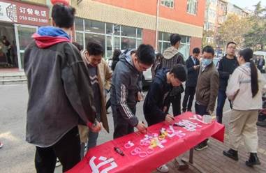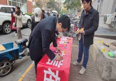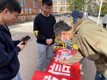 在10月25日和10月28日上午,文联部分别在杏园餐厅对面和东侧体育器材处举办了线下签名活动。活动开始前,党办葛老师来到了活动现场指导了本次活动。活动开始后,得到了众多学生以及老师的支持,其中有研究生部王智杰主任和集成中心韩伟华老师等。大家纷纷在活动条幅上签字,以表明自己诚信科研的决心。一小时后,3米长的条幅就布满了名字。
