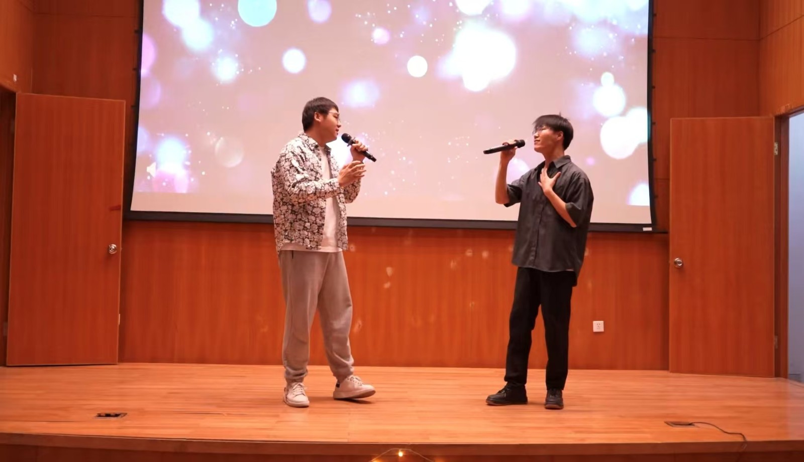 逐梦新青年,扬帆正当时。回首往昔,我们踌躇满志;放眼未来,我们携手共进,晚会进入第三篇章,半导体所的马学龙和徐翼鹏同学与来自空天院的刘潇晗同学带来的小品《时间都去哪了》爆梗频出,引得全场欢笑连连,同时也引人深思;半导体所的马源浩同学带来的歌曲《父亲的草原母亲的河》气势宏大,一开口便仿佛置身于茫茫草原中;半导体所的何可欣和王禧阳同学在最后带来一首说唱歌曲《诀爱·尽》,动听的旋律和节奏感的说唱带着台下的观众们一齐挥舞起手中的荧光棒。晚会随即进入了紧张刺激的抽奖环节,产生了本场晚会的三个一等奖。晚会尾声,由国科大材料学院的王煦以及全体演职人员带来歌曲《繁华落岸》,晚会在歌声中拉下帷幕。