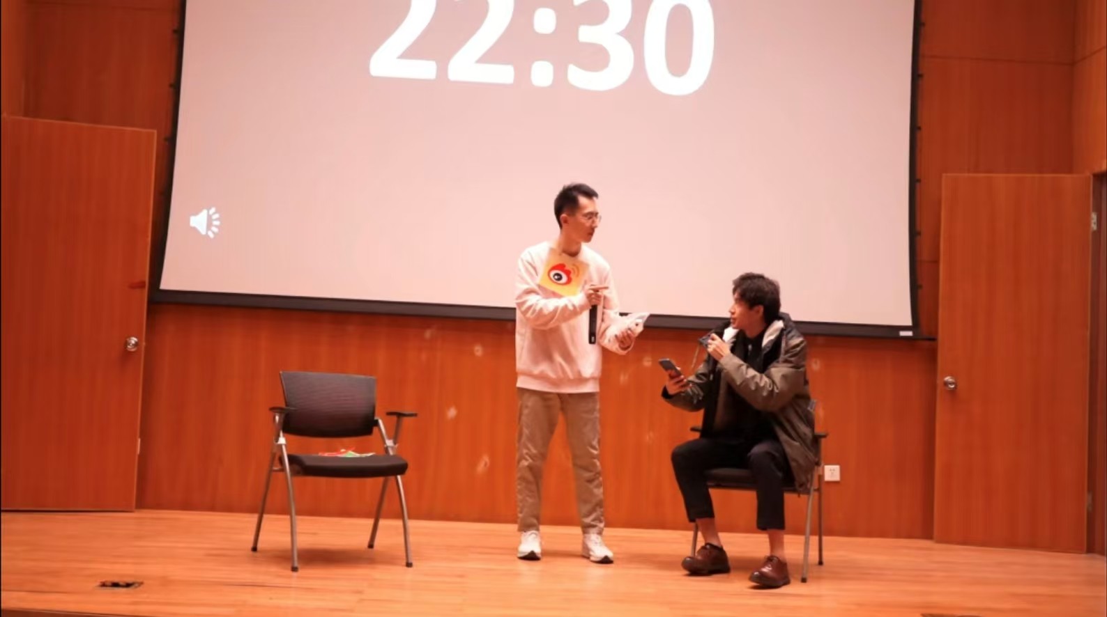 李贞耀同学带来快板《武松打虎》,逗得大家前仰后合,欢笑连连;接下来陈麟尚等同学演唱的歌曲《剪爱+Hero》把大家的思绪带向无边无际的大海;紧接着由半导体所的王禧阳同学深情演唱歌曲《租购》,仿佛唱出了世间冷暖。节目展现了青年学子的活力和朝气,点燃了晚会火热的氛围。三个精彩的节目表演结束后,进入了激动人心的抽奖环节,观众们纷纷拿起手中的抽奖券,开始了激动人心的第一轮抽奖,有十位幸运观众获得了本次晚会的三等奖。