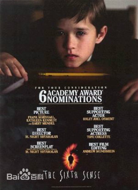 本次引入的作品《第六感》是1999年Buena Vista出品的一部灵异惊悚影片。由M·奈特·沙马兰编剧和导演,布鲁斯·威利斯,海利·乔·奥斯蒙,托妮·科莱特等主演。影片讲述一个九岁小男孩柯尔,自称能见到已故的人,一位心理医生想要为他治疗,却不被接受,柯尔认定没有人可以帮助他脱离现状。在麦尔康医生不断坚持下,柯尔终于放下心防,让医生了解自己的问题,也慢慢地接受他的建议……
