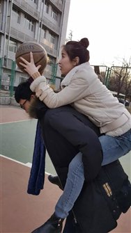 夹到半场后,给另两位选手,必须女生在男生背上投篮