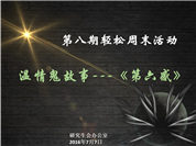 “轻松周末”活动从3月11号开始,每两周一次。在这四个多月时间里,我们欣赏了电影《西游记之大圣归来》、《我是传奇》、《黑夜传说》、《疯狂动物城》、《明日边缘》、《第六感》等,探讨了中国动画产业的发展和未来前景,分析了国际动画产业的发展脉络,学习了西方吸血鬼形象的起源及社会心理,并思考着在未知病毒的爆发的世界中如何自处,在具有生命重来的能力或者看见鬼怪的能力时怎样生活。看电影之余,我们也配合着“棋牌大赛”, 分析了棋牌文化的发展与内涵,并进行了“狼人杀”游戏,体验逻辑思考和语言表述的魅力。在活动中,我们收获着知识与快乐,我们期待更多朋友的加入!