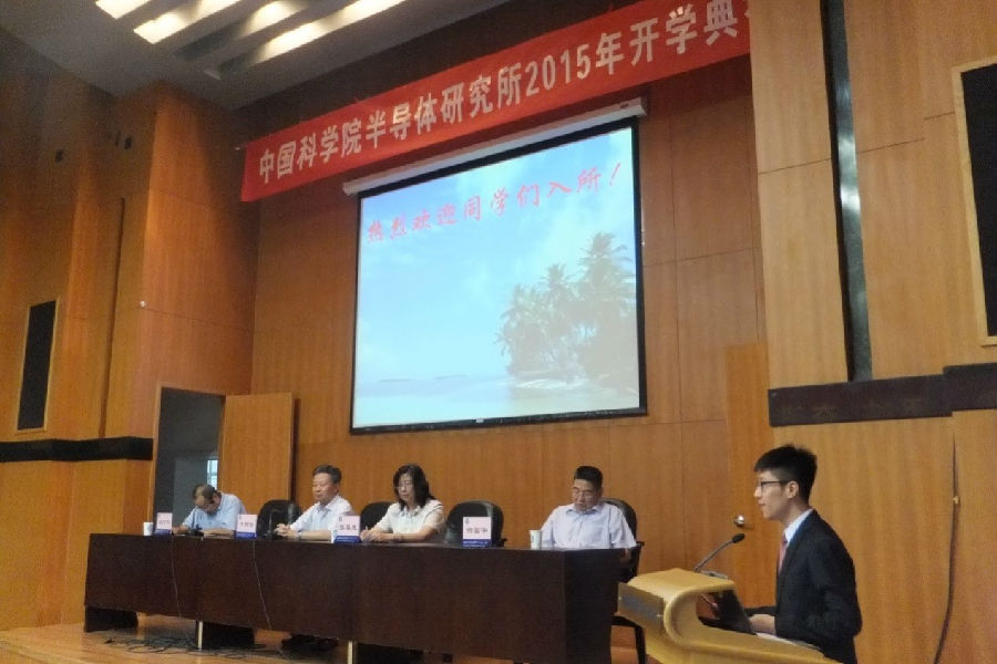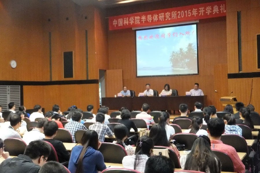 2015年9月1日上午,半导体所2015年度秋季开学典礼暨研究生入所教育在我所学术会议中心举行。所长李树深院士、党委书记、副所长张春先、副所长祝宁华、副所长杨富华出席典礼。