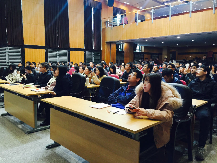 祝素娜主任向与会同学们介绍了开此次动员会的重要性,然后分别由负责研究生就业指导工作的陈东军老师及学位申请管理工作的陈明霞老师详细介绍了相关工作的管理规定、流程、时间安排和注意事项等,并回答了同学们的问题。
