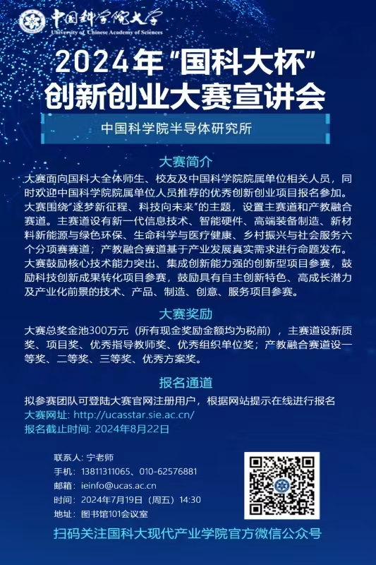 2024年“国科大杯”创新创业大赛即将拉开帷幕。为了确保所有参与者能够充分理解赛事规则并解答可能存在的疑问,国科大宁老师将来我所进行大赛宣讲。