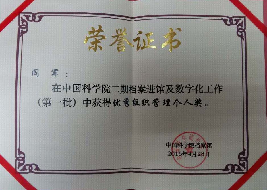 近日,根据《关于表彰中国科学院二期档案进馆及数字化工作(第一批)先进集体和优秀个人的决定》,中国科学院档案馆决定对11个先进集体和24位优秀个人进行表彰。其中,半导体所阎军同志荣获“优秀组织管理个人奖”称号。