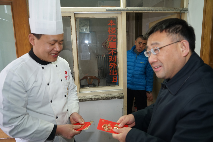 2月14日(腊月二十九)上午,党委书记、副所长冯仁国在综合办公室主任慕东、副主任兼运行保障部部长于光军、科住物业公司半导体所项目部经理刘晓红等陪同下,代表研究所亲切看望慰问了后勤支撑系统职工和科住物业公司值班人员,将新年的祝福和全所职工的问候带给他们。