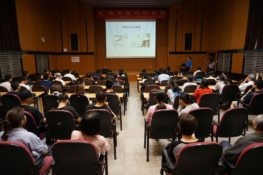 开幕式于上午九点半在学术会议中心举行。半导体所党委副书记、纪委书记樊志军致欢迎词。她代表半导体所对来访师生和公众表示了热烈欢迎。她谈到,信息技术的每一次革命性飞跃都是由半导体科学技术的创新突破所引发的,半导体科学技术与我们的生活息息相关,并简要介绍了半导体所的科研布局、杰出人才、成果转移转化等方面的情况。她表示研究所今天为大家安排了丰富多彩的活动,希望大家在半导体的世界里能有所收获,并期待更多的年轻人投身于我国的半导体科技事业。