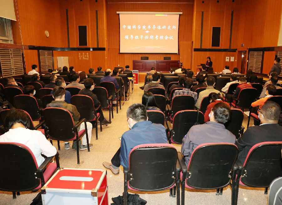 2022年4月27日,半导体所召开领导班子任期考核大会。中国科学院人事局局长孙晓明以及人事局、北京科创中心相关部门负责同志等组成的考核组参加了会议。半导体所领导班子成员、所务会成员、党委委员、纪委委员、副高级以上专业技术人员、中层管理干部、党支部书记等200余人参加了考核大会。受疫情防控要求,考核大会设主会场和3个视频分会场。大会由孙晓明主持。