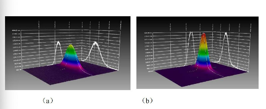 图 2(a)和(b)分别为相同功率下现代半导体激光器和高功率密度光子晶体激光器的能量分布图