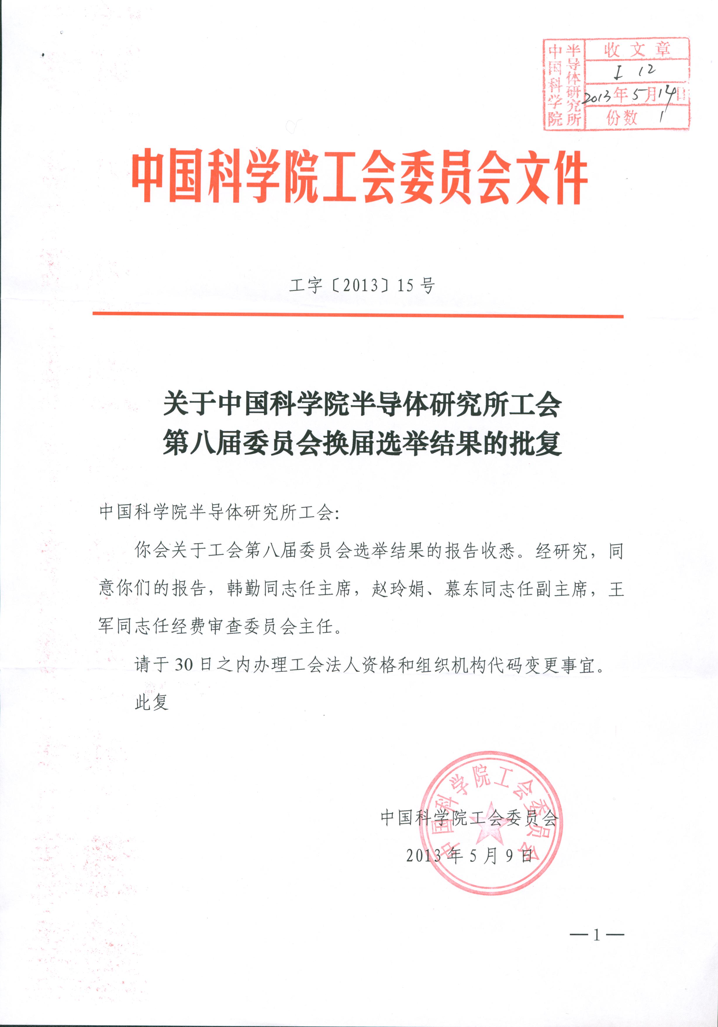 1.关于中科院半导体所工会第八届委员会换届选举结果的批复