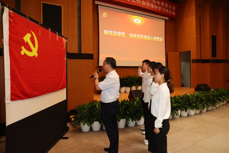 大会在庄严的国歌声中开幕。参会人员庄严肃立,齐唱国歌。随后,新党员、在座全体党员面向党旗,在党委委员慕东的带领下进行庄严宣誓和重温入党誓词,教育和引导大家不忘初心,牢记誓言,勇于担当。