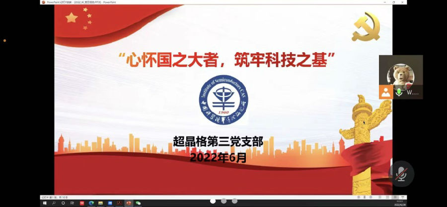 为深入贯彻落实上级党支部传达的关于组织开展“心怀国之大者 筑牢科技之基”主题党日活动的通知,6月28日下午,超晶格第三党支部通过线上会议形式开展主题党日活动,支部30余名党员参与线上会议,会议由党支部宣传委员梁寅磊同志主持。