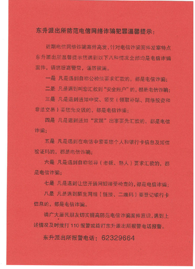 一、 冒充社保、医保、银行、电信等工作人员。以社保卡、医保卡、银行卡消费、扣年费、密码泄露、有线电视欠费、电话欠费为名,以自己的信息泄露,被他人利用从事犯罪,以给银行卡升级、验资证明清白,提供所谓的安全账户,引诱受害人将资金汇入犯罪嫌疑人指定的账户。