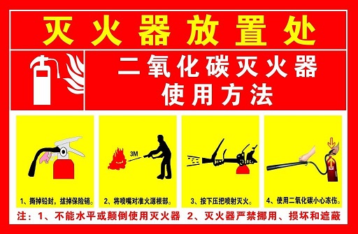 灭火时只要将灭火器提到或扛到火场,在距离燃烧物5米左右,放下灭火器,拔出保险销,一手握住喇叭根部的手柄,另一只手紧握启闭阀的压把。对没有喷射软管的二氧化碳灭火器,应把喇叭筒往上扳70~90度。事业时,不能直接用手抓住喇叭外壁或金属连接管止手被冻伤。灭火是当可燃液体呈流淌状燃烧时,使用者应将二氧化碳灭火剂的喷流由近到远向火焰喷射。如果可燃液体在容器内燃烧时,使用者应将喇叭筒提起,从容器的一侧上部向燃烧的容器喷射,但不能将二氧化碳射流直接冲击可燃液面上,以防止将燃液体冲击容器而扩大火势,造成灭火困难。