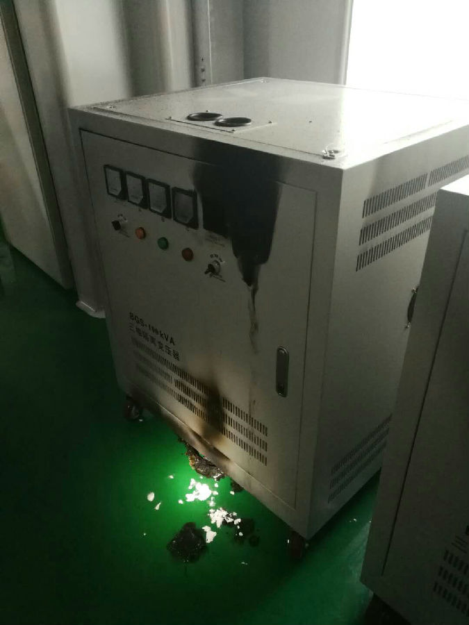 经查明,失火事故发生于该变压器上部安装的自动温控表中,燃烧产生火花坠落引燃底部电缆外皮使铜线完全裸露,造成变压器短路和输出断电。该变压器设备用于VEECO Gen 20分子束外延系统的三相电源隔离变压,其型号为BGS-100KVA,由国内昆山艾格森电气有限公司生产。这次失火产品(2017年4月20日出厂)性能检验单据齐全,但其变压器设备十分关键的控温器部件存在质量问题,仅使用几个月的时间就发生失火事故。事故发生时主体真空设备电源处于低功耗待机状态,事后VEECO公司派专人检查了分子束外延设备的电源线缆等,研究组将追究变压器失火事故损失、断电关联损失(包括真空源炉急速降温导致坩埚热应变损伤、设备重启中可能存在的其他部件损失等)等赔偿责任。