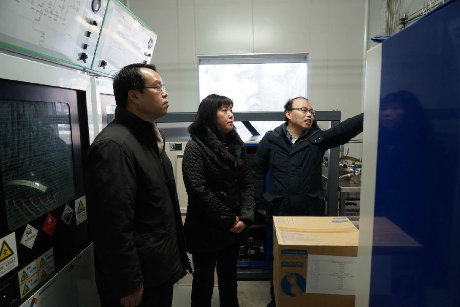 材料重点实验室潘教青副主任、光电子研发中心赵德刚主任、超晶格实验室赵建华研究员、倪海桥研究员分别向樊志军汇报了本部门MOCVD设备、MBE设备日常使用情况以及设备的源供给系统、尾气处理系统、安全保护及报警系统等运行情况。樊志军在检查中强调,各实验室尤其是使用重要科研设备设施的场所一定要高度重视安全工作,牢固树立“安全无小事”的理念,认真落实各项安全管理制度和措施,对设备管理、化学品管理和安全巡查值守情况要进行详细记录,发现问题及时整改。