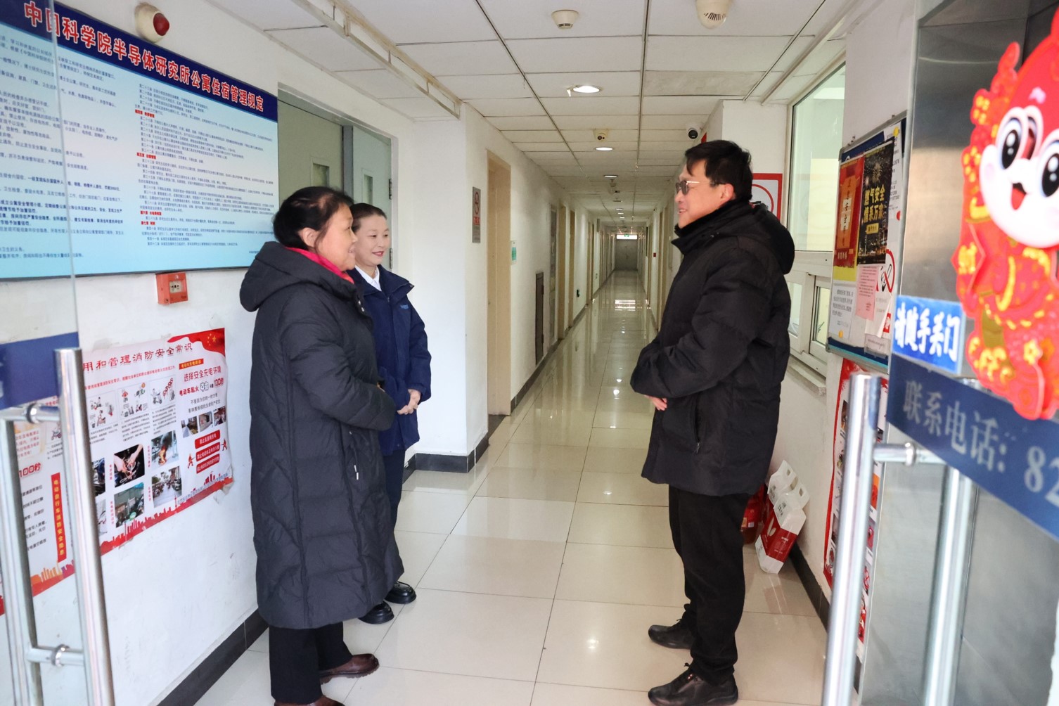 月27日(农历腊月二十八)上午,张韵副所长代表研究所亲切看望慰问了后勤支撑系统职工和科住物业公司值班人员,将新年的祝福和全所职工的问候带给他们。