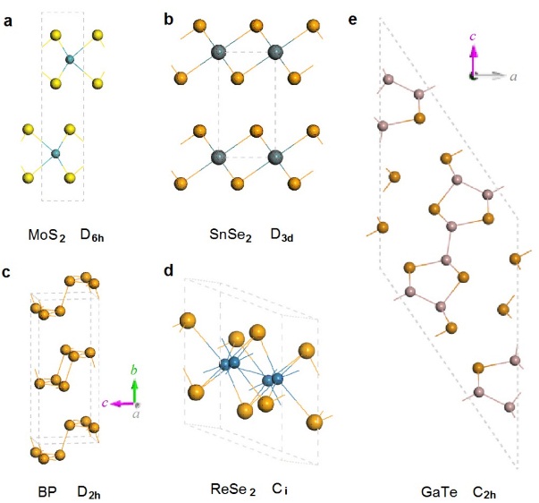 图1 属于不同对称性的5种典型层状材料的晶格结构。