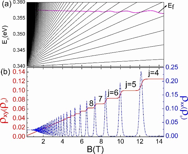 半导体所超晶格国家重点实验室博士生周小英、娄文凯副研究员和常凯研究员从理论上研究了单层黑磷的朗道能级和磁输运性质,给出了与数值结果吻合的朗道能级的解析表达式。由于单层黑磷能带的各向异性,其朗道能级对应的波函数也是空间各向异性的。作者还计算了纵向磁阻和整数霍尔电阻平台随磁场的变化关系。文章发表在Scientific Reports 5, 12295 (2015)。