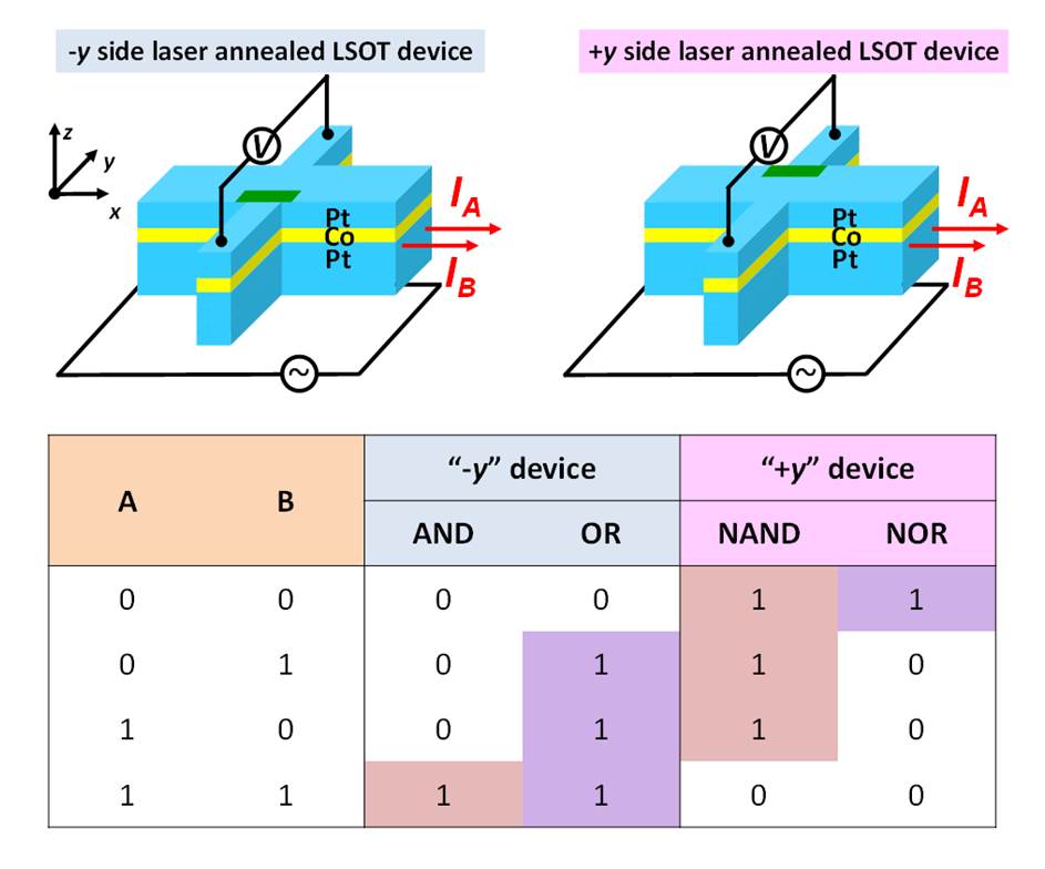 图2 翻转取向互补的一对LSOT器件的布尔逻辑操作示例
