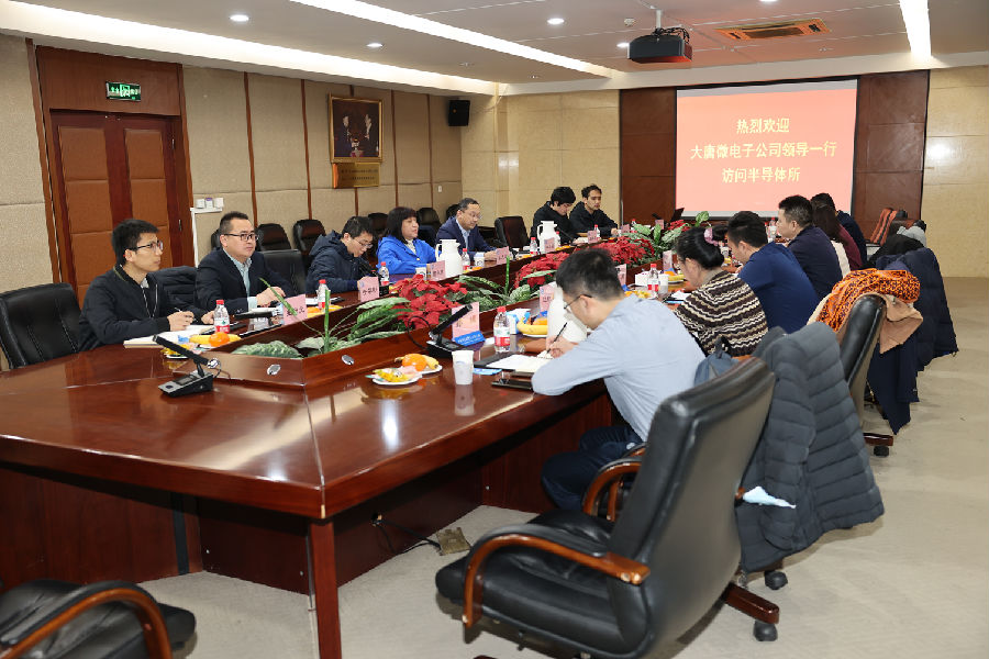 2022年3月4日上午,大唐微电子技术有限公司陈中林总经理一行6人访问半导体所,与半导体所党委副书记樊志军等就集成电路芯片技术合作进行了座谈交流。