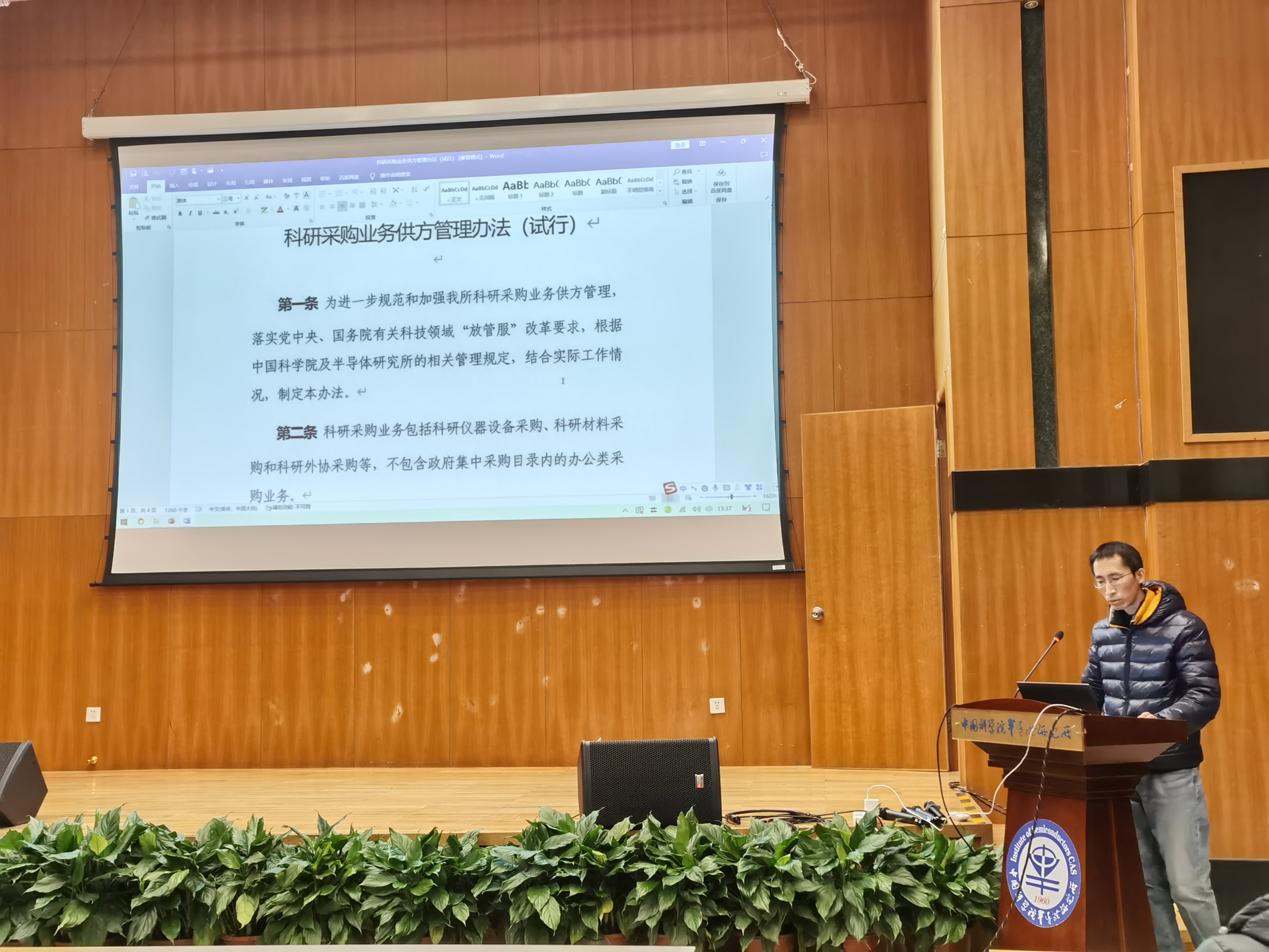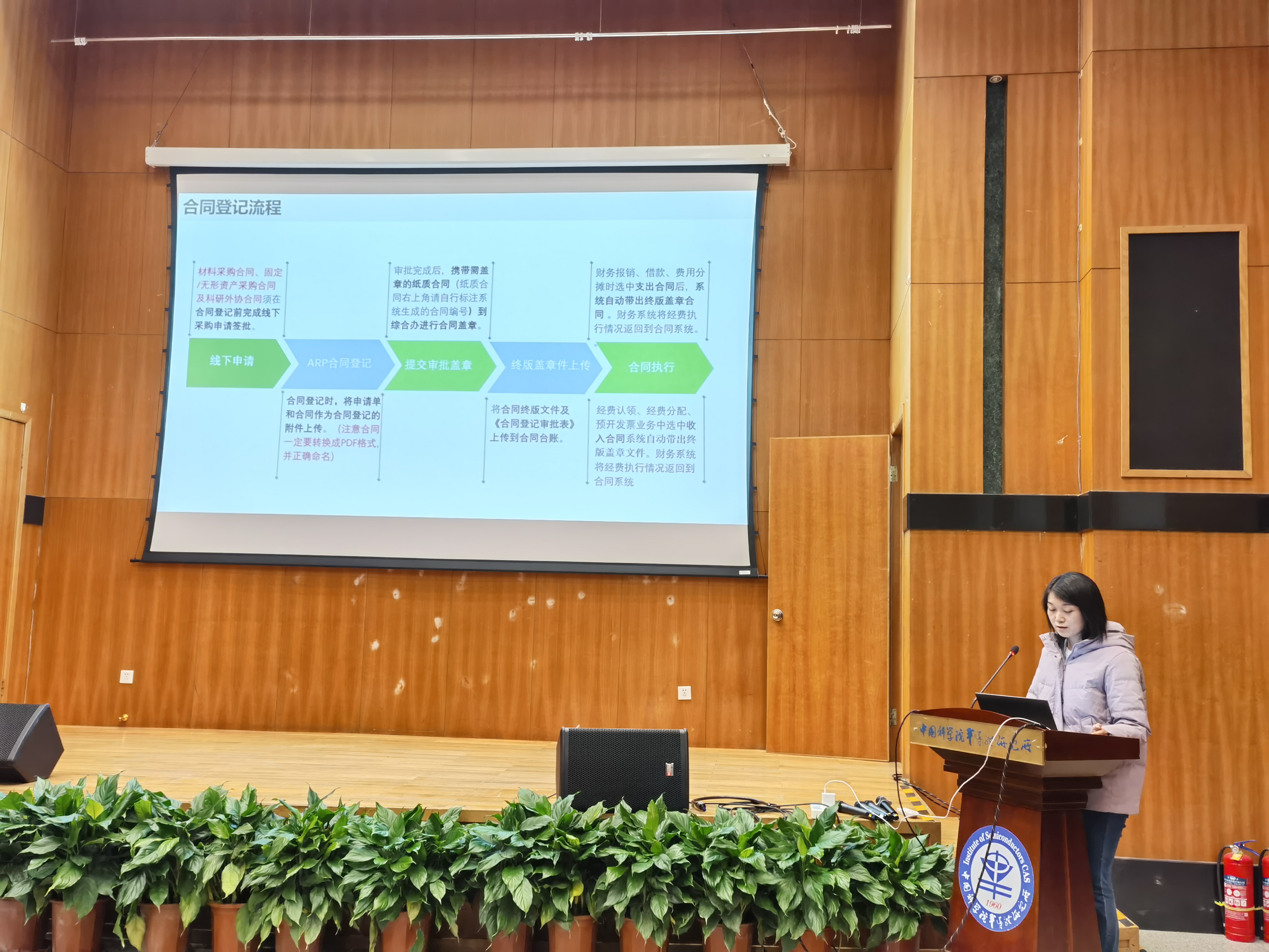 随后,科研处赵坚强详细解读了《中国科学院半导体研究所科研采购业务供方管理办法(试行)》,对近期即将开展的《中国科学院半导体研究所科研采购业务合格供方目录》更新工作进行了说明和布置,并从合同登记审核的角度对合同经办人填报的注意事项做了提示。