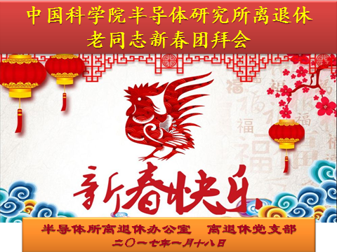 2017年的新春已经在向大家招手。为了让老同志欢度春节,将于2017年1月18日上午9时,在所学术会议中心举行离退休老同志新春团拜活动,欢迎所有离退休老同志届时参加。