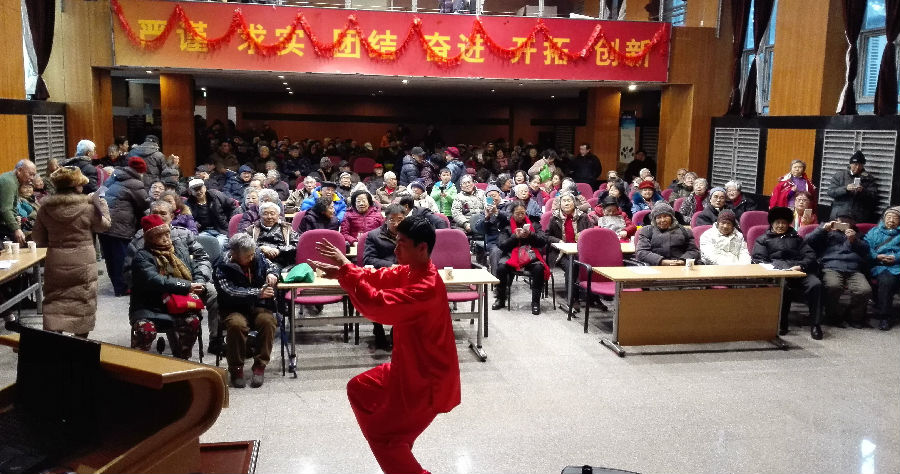 团拜会上老同志们表演了自己编排的各种节目,所里的研究生还为大家带来了精彩而充满朝气的拳术表演,引来阵阵喝彩。