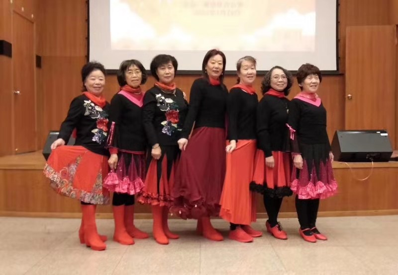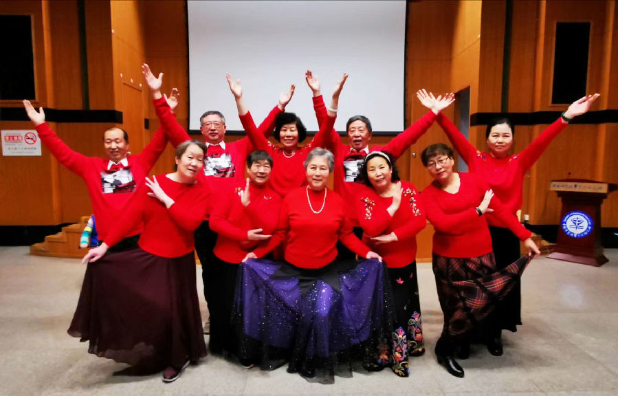 团拜会上老同志们兴高采烈,互叙友情,互祝新春。老同志们还各展才艺,表演了精彩的歌舞演唱。