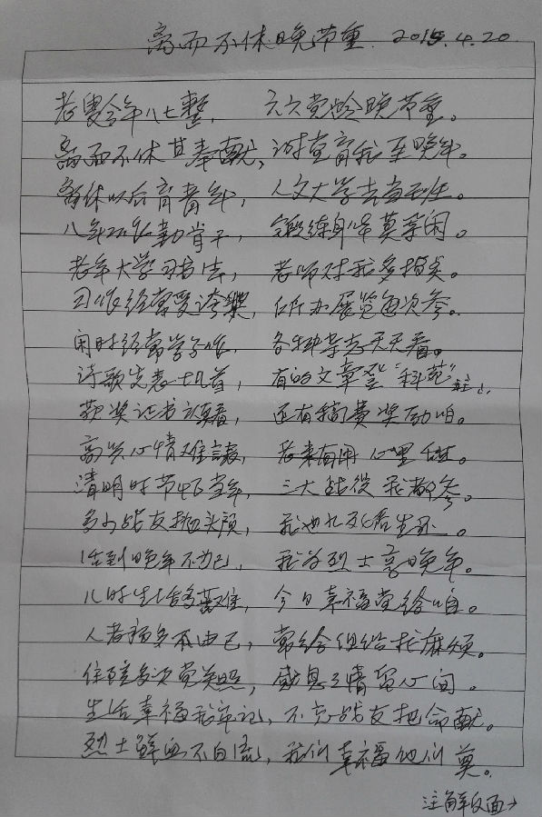注:“科苑”指院《科苑金秋》杂志,在此杂志上登过的文章有《一个老兵的叙述》、《一次牛圈里的党课》、《我是半导体所里最幸福的人》,诗歌十几首如《国庆抒怀》等。