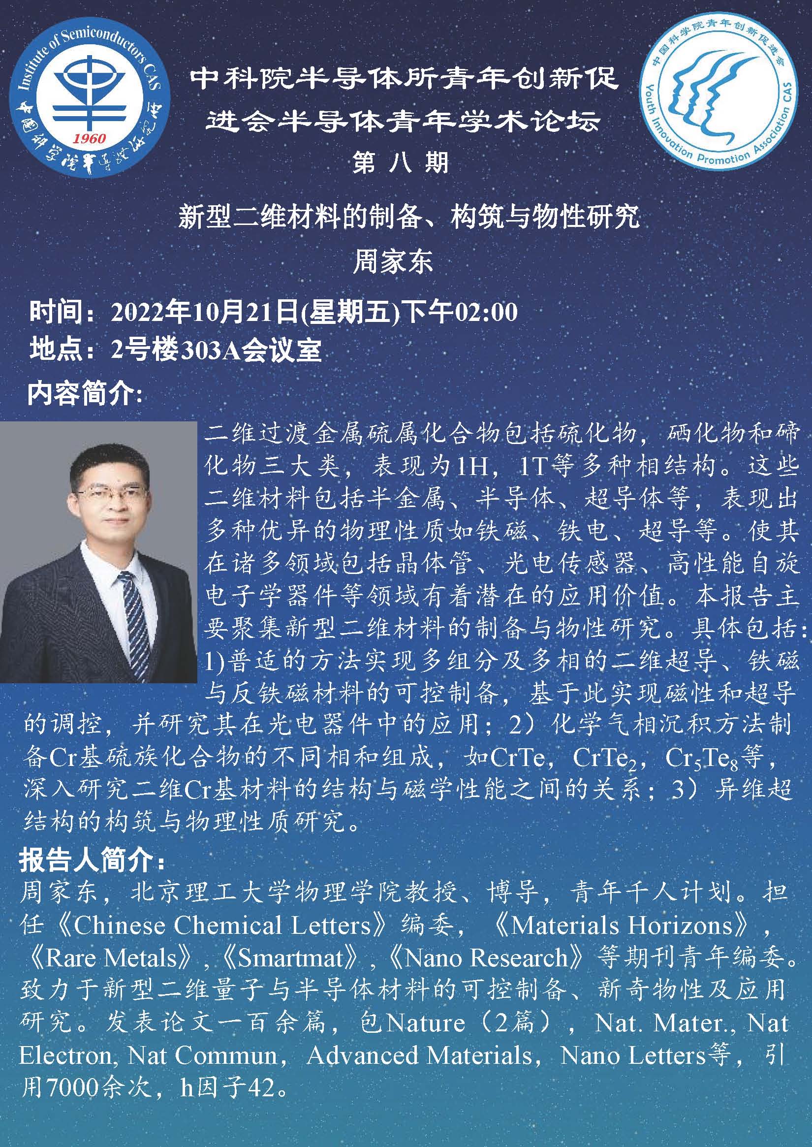 【青促会青年学术论坛】第8期:新型二维材料的制备、构筑与物性研究