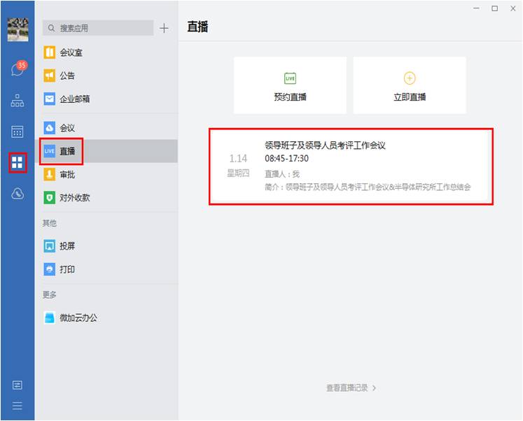 3.会议当天上午8:45分,我们会将直播链接地址发送到企业微信职工群中,可直接点击收看!