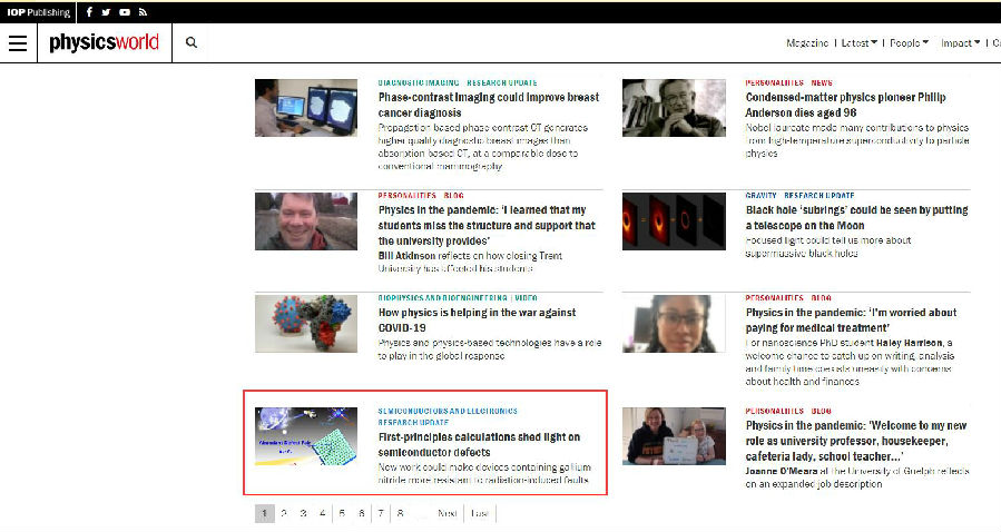 PW报道链接:https://physicsworld.com/a/first-principles-calculations-shed-light-on-semiconductor-defects/