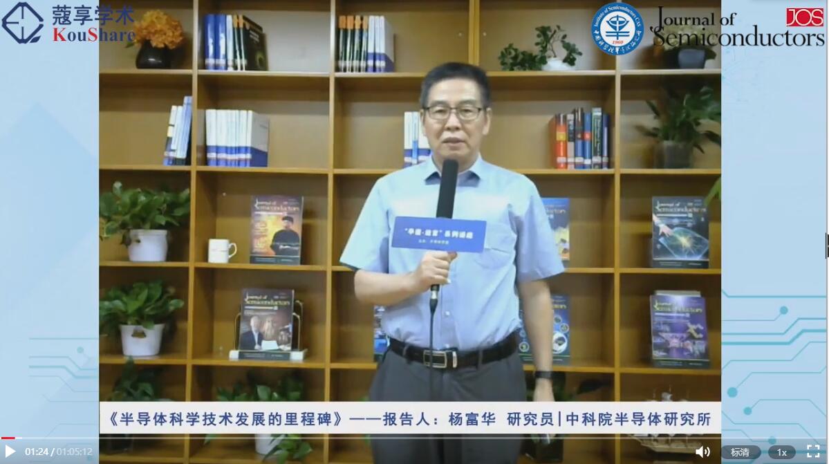6月17日晚,《半导体学报》主办的“半语-益言”系列直播讲座第二期落幕。本期讲座由骆军委研究员主持,杨富华副所长在线做了题为“半导体科学技术发展的里程碑”精彩报告。报告着重讲述了半导体领域诺贝尔物理奖与半导体科学技术发展里程碑的关联性,揭示了其发展规律和特点,具有重要的现实意义。