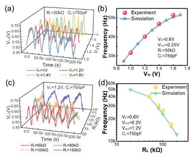 近年来,基于阻变存储器(RRAM)等神经形态器件的类脑计算成为研究热点,有望突破传统计算架构的“冯•诺依曼”瓶颈,而低功耗、高一致性的神经元器件实现高性能类脑计算的关键要素之一。相较于传统CMOS电路构建的“积分-发放”神经元(integrate-and-fire neuron),基于阈值开关器件的振荡神经元以其体积小、电路结构简单等优势引起了人们的广泛关注,而构建振荡神经元的一个关键挑战在于如何减小器件的随机性。