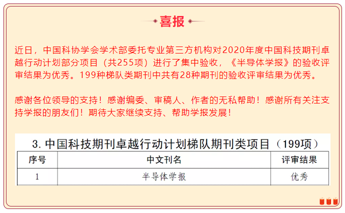 喜报!卓越行动计划2020年度验收评审《半导体学报》喜得优秀