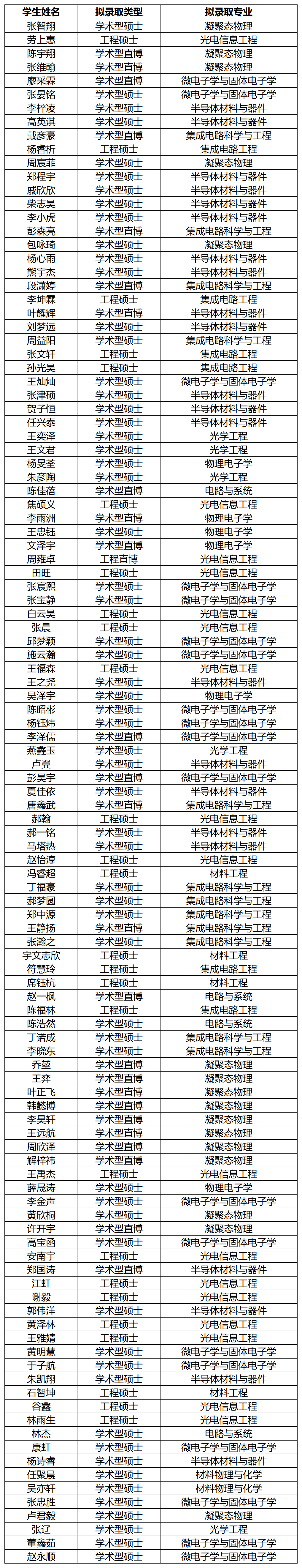 根据相关规定,现将半导体所2026年推荐免试生拟录取名单公示如下: